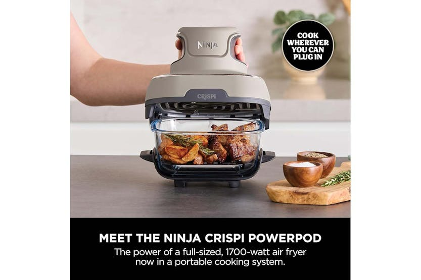 Introducing the Ninja Crispi 4-in-1 Portable Glass Air Fryer, a compact and versatile cooking system perfect for small kitchens and busy lifestyles. With 4 functions - Air Fry, Roast, Keep Warm, and Recrisp - and swappable glass containers, you can easily prepare family meals or personal portions with ease. Enjoy healthier cooking with up to 75% less fat using the Air Fry function, and with dishwasher safe parts, cleanup is a breeze. Upgrade your cooking experience with the Ninja Crispi 4-in-1 Portable Glass Air Fryer and enjoy delicious meals with minimal effort. Experience the convenience of cooking on-the-go with the Ninja Crispi 4-in-1 Portable Glass Air Fryer. This innovative cooking system features thermal-shock resistant glass containers, non-stick crisper plates, and a 1700W PowerPod for efficient cooking. With the ability to cook, serve, and store all in one container, meal prep has never been easier. Whether you're cooking for one or the whole family, the Ninja Crispi 4-in-1 Portable Glass Air Fryer offers a convenient and practical solution for all your cooking needs.