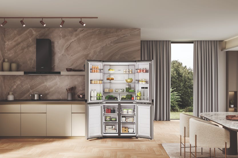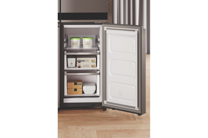 Upgrade your kitchen with the Whirlpool 4 Door Fridge Freezer | WQ9B2LG, featuring innovative NoFrost technology to prevent ice build-up and fast cooling for optimal food storage. With a spacious 560-600 L capacity and 6th Sense Technology for precise temperature control, this Energy Class A+ appliance offers both performance and efficiency. The FlexiFreeze compartment allows for customizable temperature settings, while the easy access tray ensures convenient storage of frequently used items. Don't miss out on the opportunity to receive 10% back in Harvey Norman Gift Cards when you spend €500 or more on Large Appliances. Dimensions (cm): 187.4 (H) x 90.9 (W) x 69.8 (D) Energy Rating: A+ Installation Type: Free-standing Star Rating: 4 Material of Shelves: Glass with profile Number of Temperature Zones: 3 Thermometer Freezer Section: Digital Product Fiche and NEL Data Sheet included.