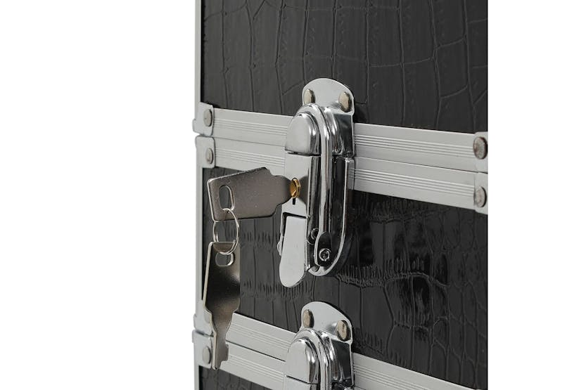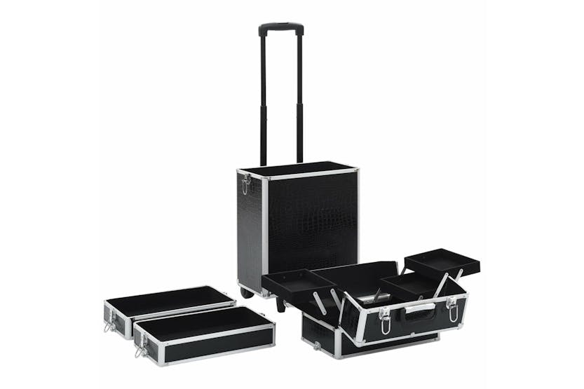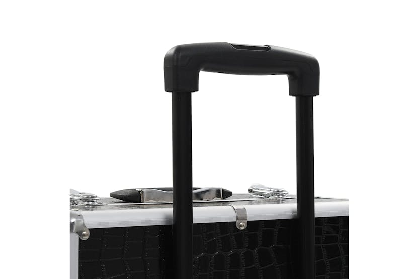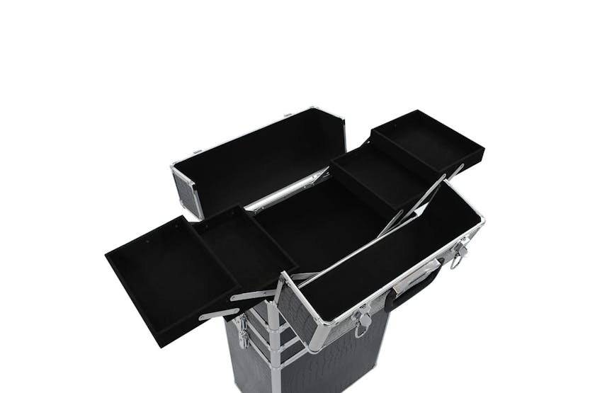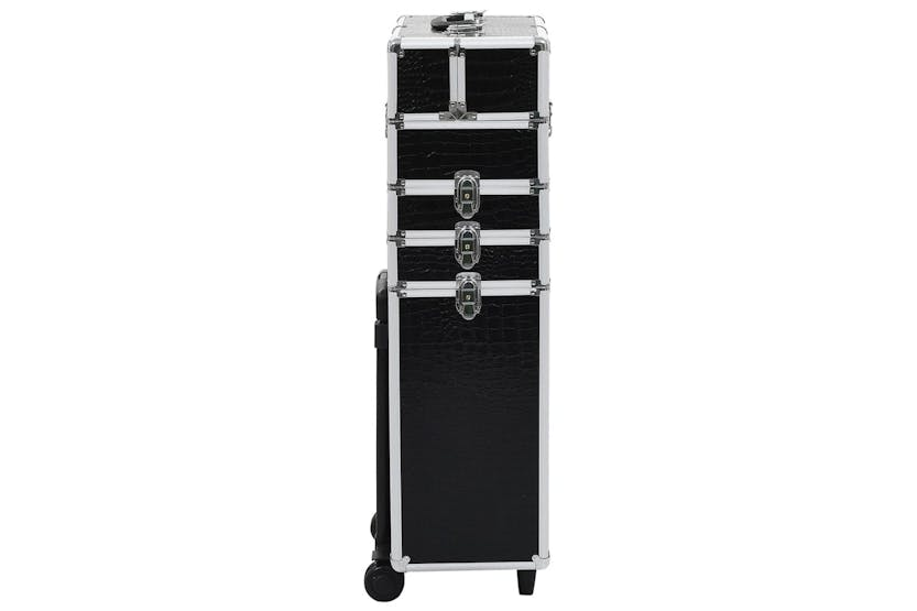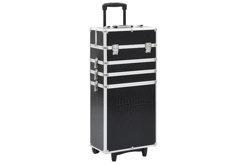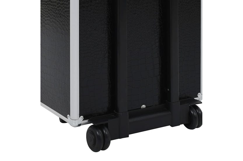 Keep your cosmetics neatly organised with the vidaXL 91817 Make-up Trolley. Made of durable materials such as wood, ABS sheeting, and aluminium, this trolley features 4 tiers and extendable trays in the top case for ample storage space. The black trolley with a crocodile pattern is easy to move around with its 4 detachable casters, making it the perfect solution for beauty professionals on the go. Dimensions of 37 x 22 x 78 cm (L x W x H) ensure that all your beauty products can be stored in one convenient place. Purchase online for free delivery and enjoy the convenience of having your cosmetics easily accessible wherever you go.