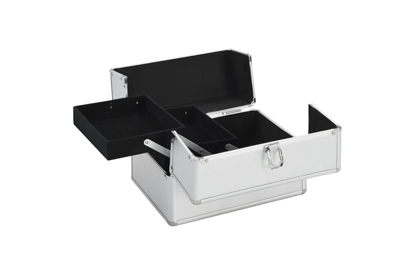 Store all your beauty products in style with the vidaXL 91828 Make-up Case. Made of durable aluminium, ABS, and wood, this sleek silver case features an extendable top and trays for ample storage space. With a lockable design and convenient carrying handle, it's the perfect solution for keeping your cosmetics organized and in perfect condition. Order online now for free delivery!