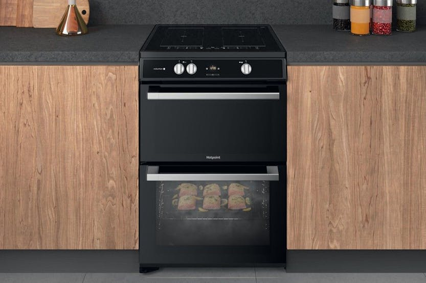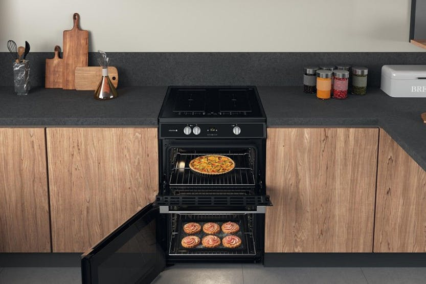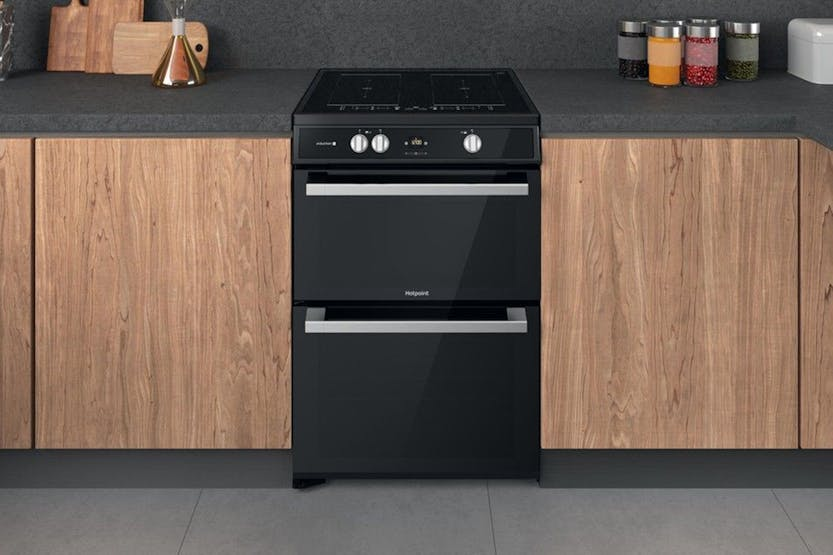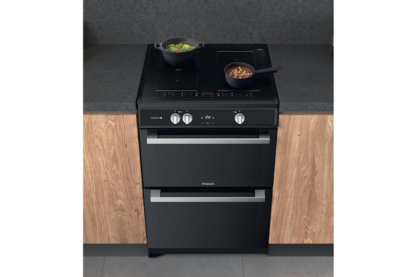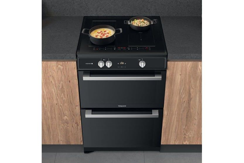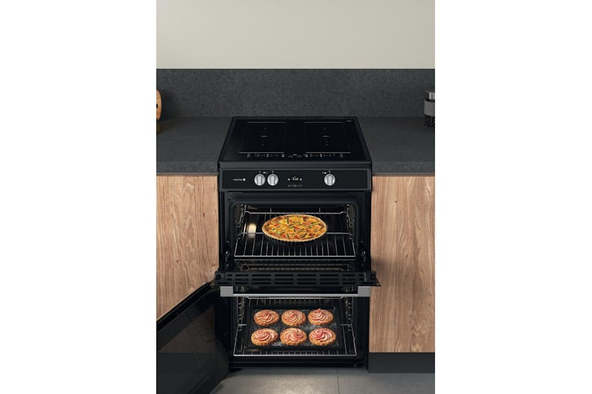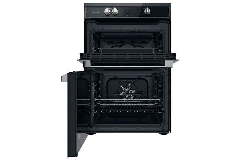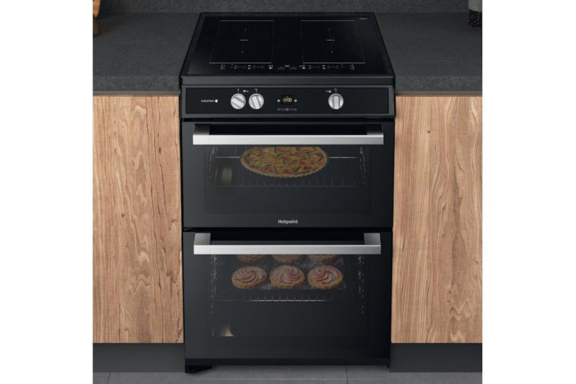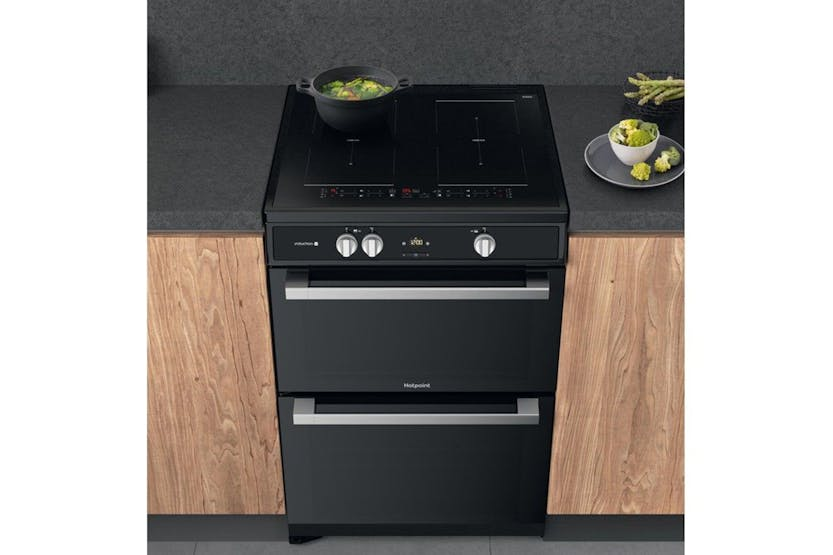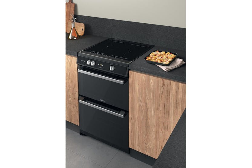 Upgrade your kitchen with the Hotpoint 60cm Electric Cooker with Double Oven | HDT67I9HM2CUK. This sleek black cooker features 4 induction plates and catalytic liners that use oven heat to keep itself clean, saving you time and effort. With a fan oven, electronic controls, and removable glass doors for easy cleaning, this cooker offers both convenience and performance in a stylish 60cm width design. Take advantage of the 10% back in Harvey Norman Gift Cards promotion when you spend €500 or more on Large Appliances. Elevate your cooking experience with the Hotpoint HDT67I9HM2C/UK and enjoy efficient induction cooking, easy cleaning, and a modern design that will enhance your kitchen space.