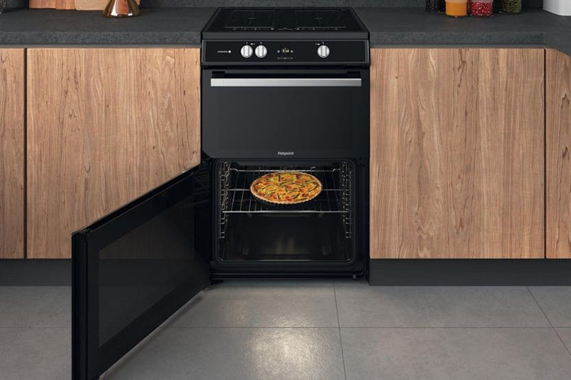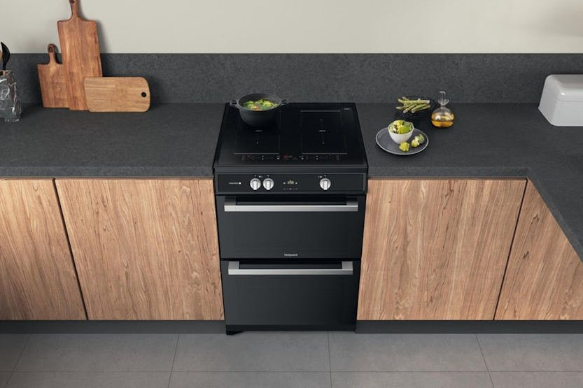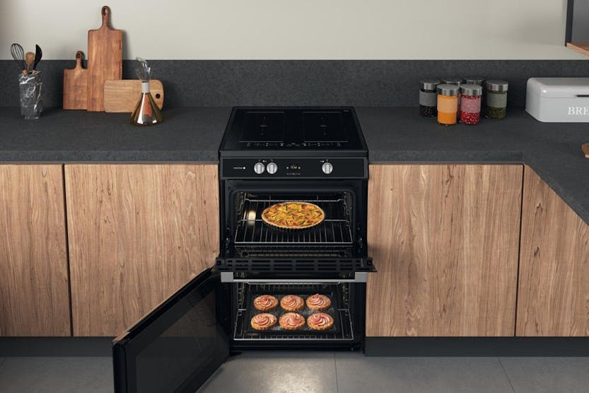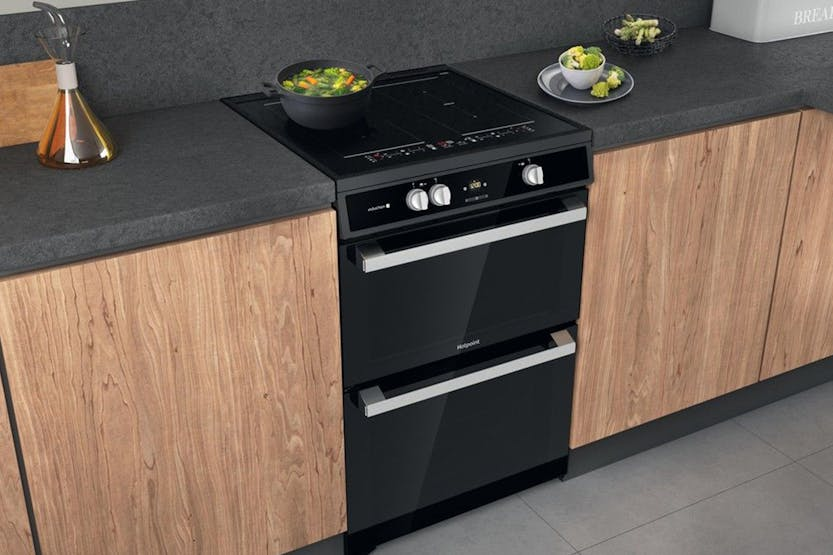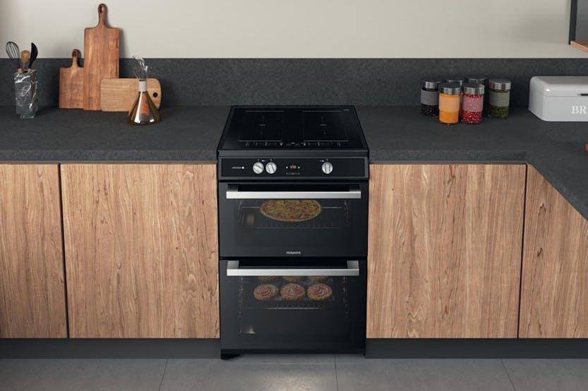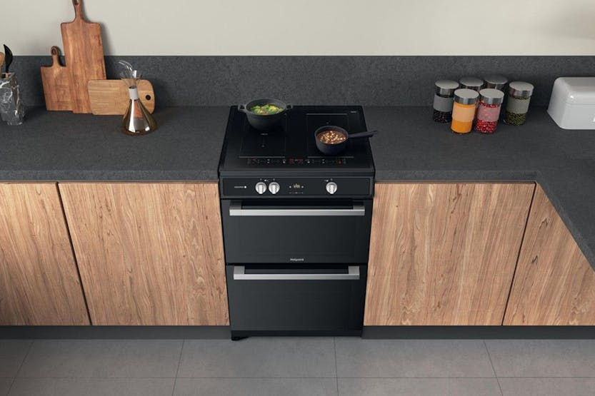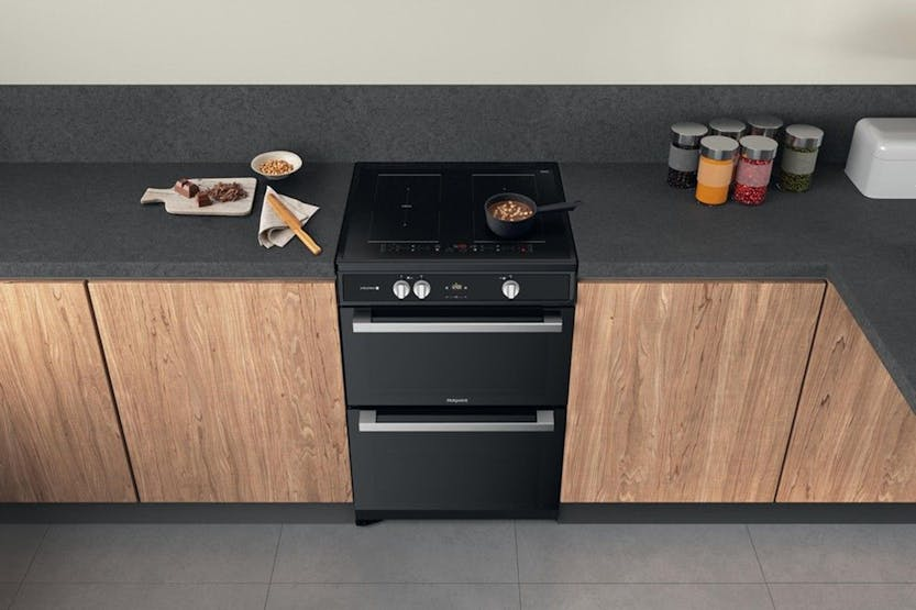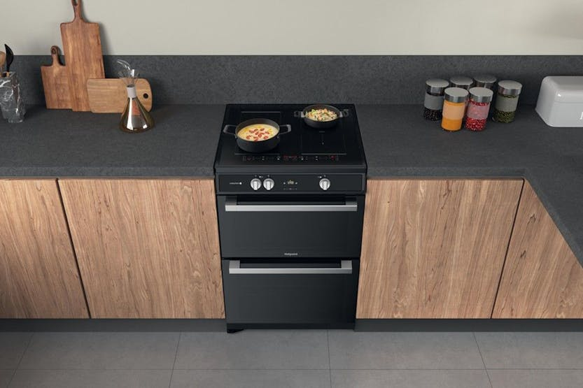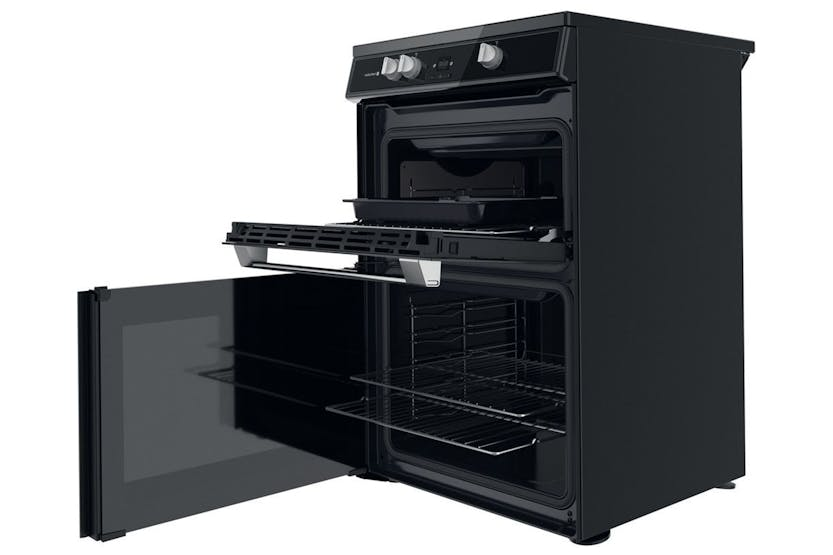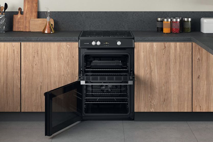 Upgrade your kitchen with the Hotpoint 60cm Electric Cooker with Double Oven | HDT67I9HM2CUK. This sleek black cooker features 4 induction plates and catalytic liners that use oven heat to keep itself clean, saving you time and effort. With a fan oven, electronic controls, and removable glass doors for easy cleaning, this cooker offers both convenience and performance in a stylish 60cm width design. Take advantage of the 10% back in Harvey Norman Gift Cards promotion when you spend €500 or more on Large Appliances. Elevate your cooking experience with the Hotpoint HDT67I9HM2C/UK and enjoy efficient induction cooking, easy cleaning, and a modern design that will enhance your kitchen space.