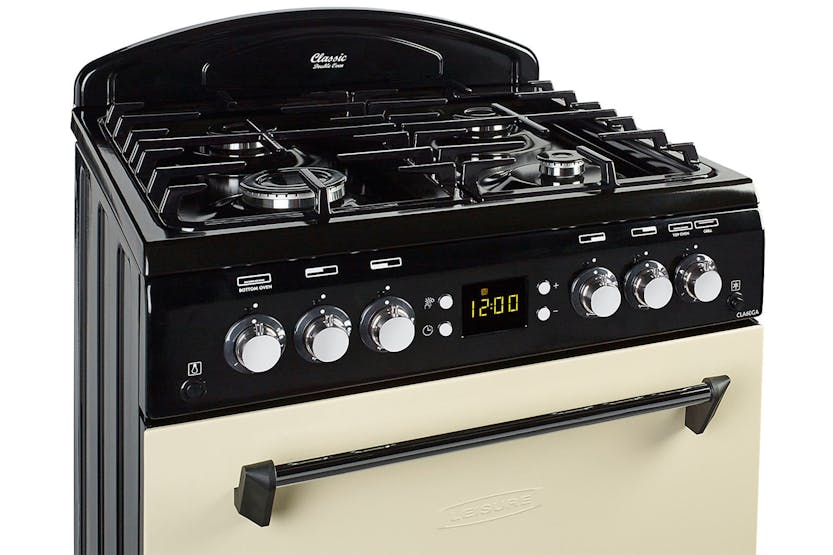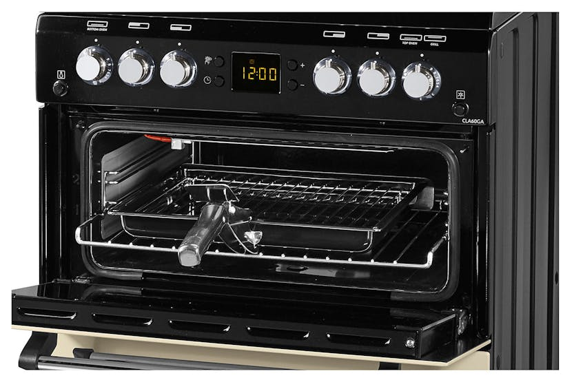 Upgrade your kitchen with the Leisure 60cm Gas Cooker | CLA60GAC. This double oven cooker offers flexibility and capacity, allowing you to cook multiple dishes at different temperatures with ease. The cook clean liners make cleaning a breeze, while the cast iron pan supports provide stability on the hob surface. With its small footprint, this cooker is perfect for smaller kitchens without compromising on functionality. Plus, get 10% back in Harvey Norman Gift Cards when you spend €500 or more on Large Appliances. Enhance your cooking experience with the Leisure 60cm Gas Cooker | CLA60GAC. Featuring adjustable feet, a grill pan handle, and a metal splashback, this cooker is not only stylish but also easy to clean with its enamel color. Upgrade your kitchen today and enjoy the convenience and efficiency of this high-quality appliance.