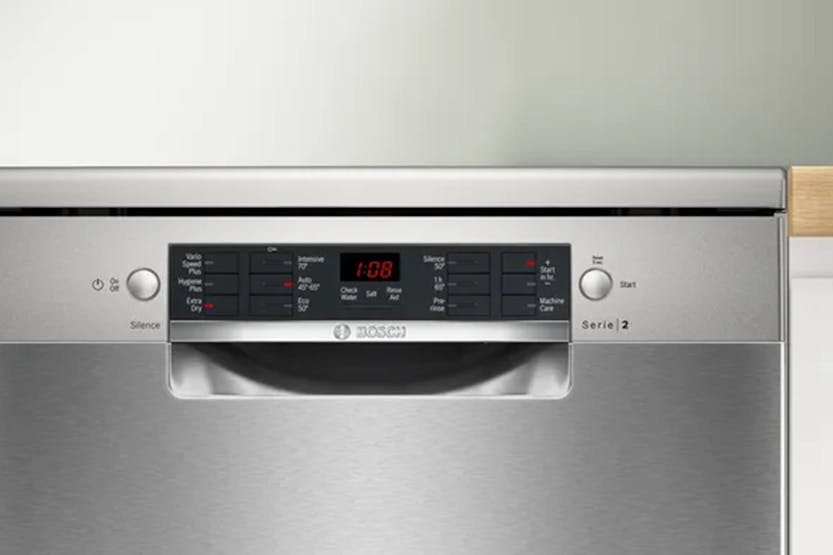 Upgrade your kitchen with the Bosch Series 2 Freestanding Dishwasher SMS26AI08G. This 12-place dishwasher features the ExtraDry option for perfectly dry plastic items, a Silence Program for quiet operation, and automatic programmes for optimal cleaning performance. The Anti Fingerprint surface coating reduces the visibility of fingerprints, while the tamperproof controls and leak protection system provide peace of mind. With a removable top and EcoSilence BLDC drive, this dishwasher offers convenience and efficiency in one sleek package. Take advantage of the Harvey Norman promotion and get 10% back in Gift Cards when you spend €500 or more on Large Appliances, making this Bosch dishwasher an even smarter investment for your home.