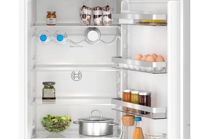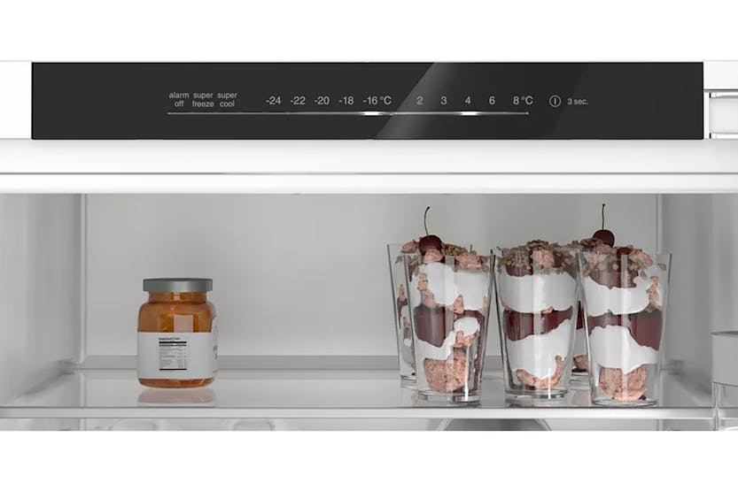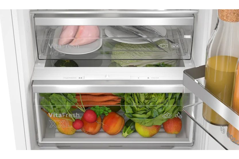 Experience maximum freshness and extra storage space with the Bosch Serie 4 Built-in Fridge Freezer | KIN96VFD0. The VitaFresh XXL Pro 0°C system keeps your fresh food at its best, while the XL design offers 11% more volume for all your favorite items. Say goodbye to manual defrosting with the No Frost feature, and enjoy faster cooling with two separate cooling systems. Plus, control your LED lighting and cooling functions with the Bosch Home Connect app for added convenience. Upgrade your kitchen with this efficient and innovative fridge freezer today. Get 10% back in Harvey Norman Gift Cards when you spend €500 or more on Large Appliances. With features like Super Cool and Super Freeze functions, intelligent inverter technology, and a sleek design that maximizes space, the Bosch Serie 4 Built-in Fridge Freezer | KIN96VFD0 offers optimal performance and convenience. Keep your food fresh and organized with this top-of-the-line appliance that takes the hassle out of maintaining your fridge and freezer.