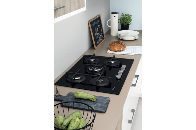 Upgrade your kitchen with the Indesit 73cm Gas Hob ING72T/BK. Featuring frontal controls for easy use, a gas on glass design for easy cleaning, and a high power flame for efficient cooking, this hob offers both style and functionality. The double crown burner ensures optimal performance for high temperature dishes, while the cast iron supports provide stability and a professional look. With versatile heat control and uniformed heat distribution, this gas hob is perfect for cooking all your family favorites with ease. Take advantage of the Harvey Norman promotion and receive 10% back in gift cards when you spend €500 or more on Large Appliances. With a sleek black design, mechanical controls, and a gas connection rating of 7300W, the Indesit ING 72T/BK Hob is a practical and stylish addition to any kitchen. Upgrade your cooking experience today with this versatile and efficient gas hob.