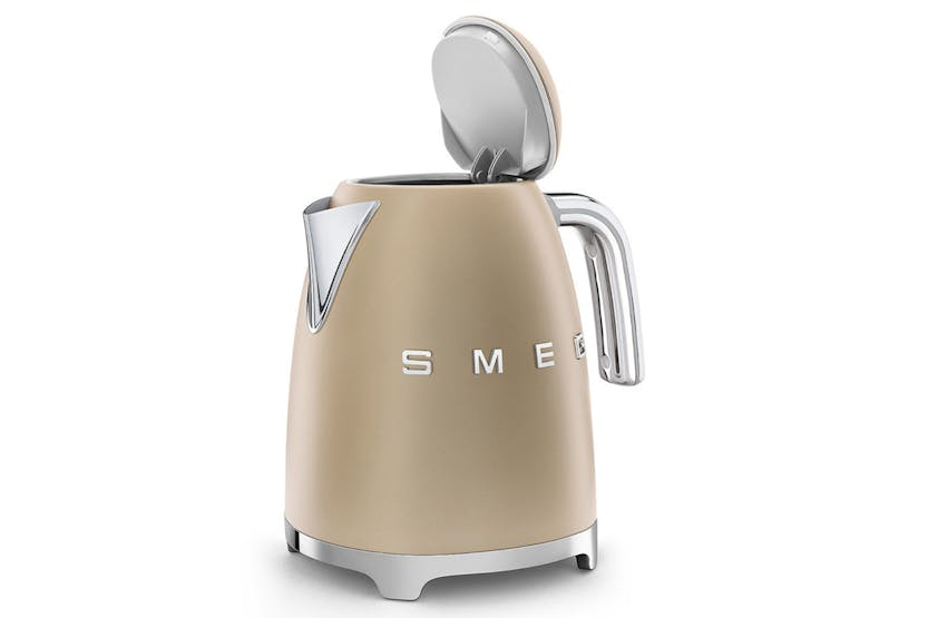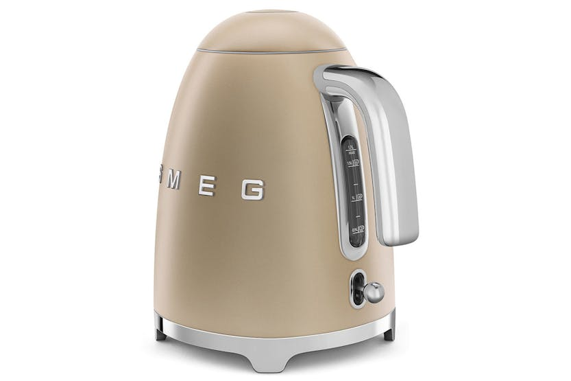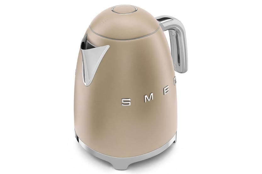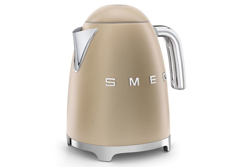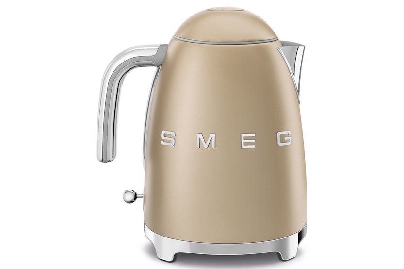 Add a touch of luxury and sophistication to your kitchen with the Smeg 1.7L 50's Style Kettle in Matte Champagne Gold. With a soft opening lid for easy filling, a limescale filter for cleaner water, and 3000W power for super fast boiling, this kettle combines style and functionality seamlessly. Complete the look with a matching toaster for the perfect breakfast set. The elegant design features a 360 swivel base for easy handling, a concealed heating element for safety, and an auto shut-off feature at 100°C for peace of mind. The integrated cord and stainless steel filter material make maintenance a breeze. Elevate your kitchen aesthetic with this trendy and practical kettle from Smeg.