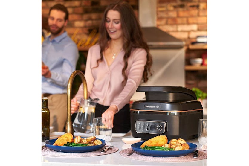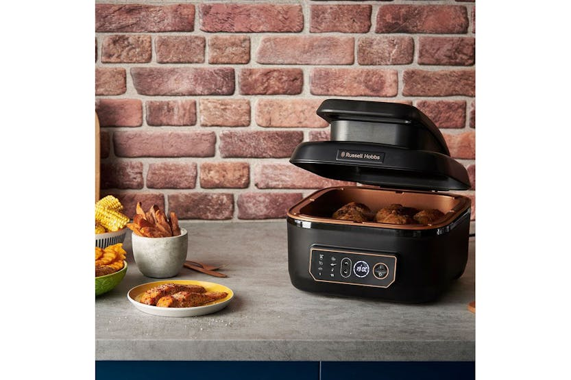 The Russell Hobbs 5.5L SatisFry Air & Grill Multicooker is your go-to kitchen appliance for fast, delicious meals with minimal oil required. With seven cooking functions including air frying, roasting, and slow-cooking, you can cook with confidence and enjoy succulent, flavorful dishes in no time. The non-stick cooking pot and grill plate are dishwasher safe for easy cleaning, making meal prep and cleanup a breeze. Say goodbye to takeout and hello to guilt-free fast food with the SatisFry Air & Grill Multicooker. Experience faster cooking times with up to 70% faster air frying than previous models and up to 76% faster than conventional oven cooking. The innovative top and bottom heat circulation ensures even cooking and browning for perfect results every time. With the SatisFry Air & Grill Multicooker, you can enjoy healthier, tastier meals without sacrificing on flavor or convenience.