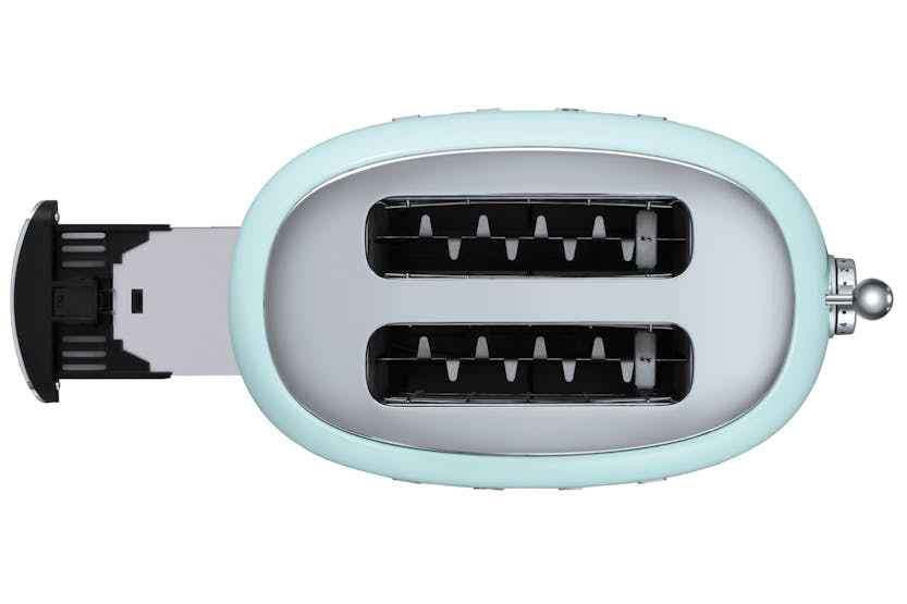 Enhance your kitchen with the Smeg 50's Retro Style Aesthetic 2 Slice Toaster in Pastel Green. This toaster features multi-function control for reheat, defrost, and bagel options, along with large compartments for even toasting. With practical optional accessories available, such as sandwich racks and bun warmers, you can enjoy delicious toasted sandwiches or keep your pastries warm. The toaster also includes anti-slip feet, a stainless steel body, and a removable crumb tray for easy cleaning, making it both stylish and functional for your kitchen. Upgrade your breakfast routine with the Smeg 50's Retro Style Aesthetic 2 Slice Toaster in Pastel Green. This toaster not only boasts a sleek stainless steel body and gloss finishing, but also features 2 extra wide slots and a sliding lever for easy operation. The integrated cable storage and illuminated control knobs add convenience, while the 4 functions - reheat, defrost, bagel, and cancel - cater to all your toasting needs. With its retro design and practical features, this toaster is a must-have for any kitchen.