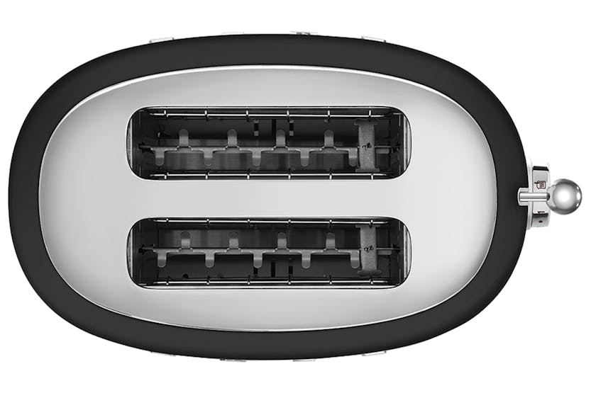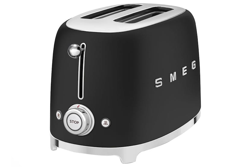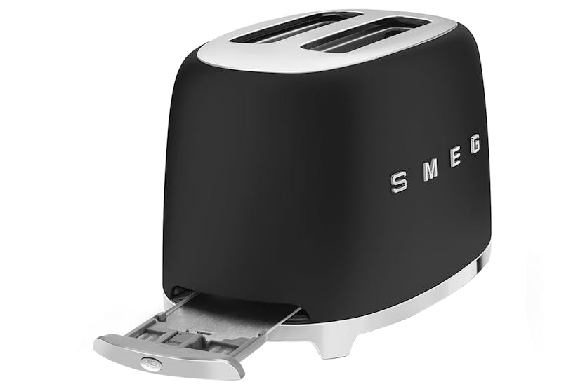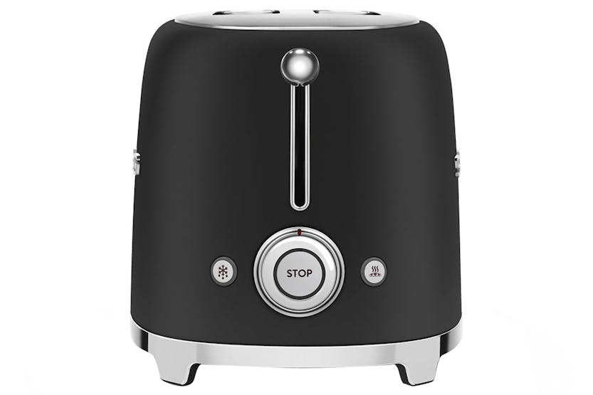 Add a touch of luxury and sophistication to your kitchen with the Smeg 50's Style 2 Slice Toaster in Matte Black. This sleek toaster features multi-function controls for reheat, defrost, and bagel options, along with self-centering racks for even toasting. With its compact design and versatile toasting levels, this toaster is perfect for any space and bread type, making it a stylish and practical addition to your kitchen. Experience ultimate convenience with the automatic pop-up feature and easy cleaning with the removable crumb tray. The Smeg 50's Style 2 Slice Toaster in Matte Black also boasts anti-slip feet, a reheat function, and an integrated cord for a seamless and enjoyable toasting experience.