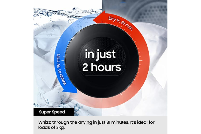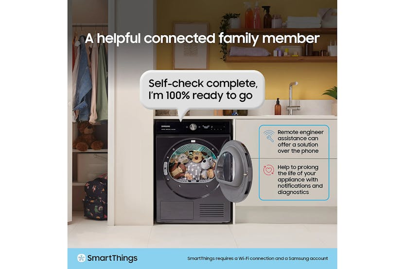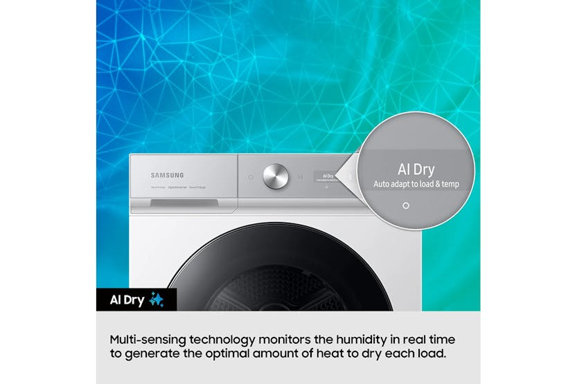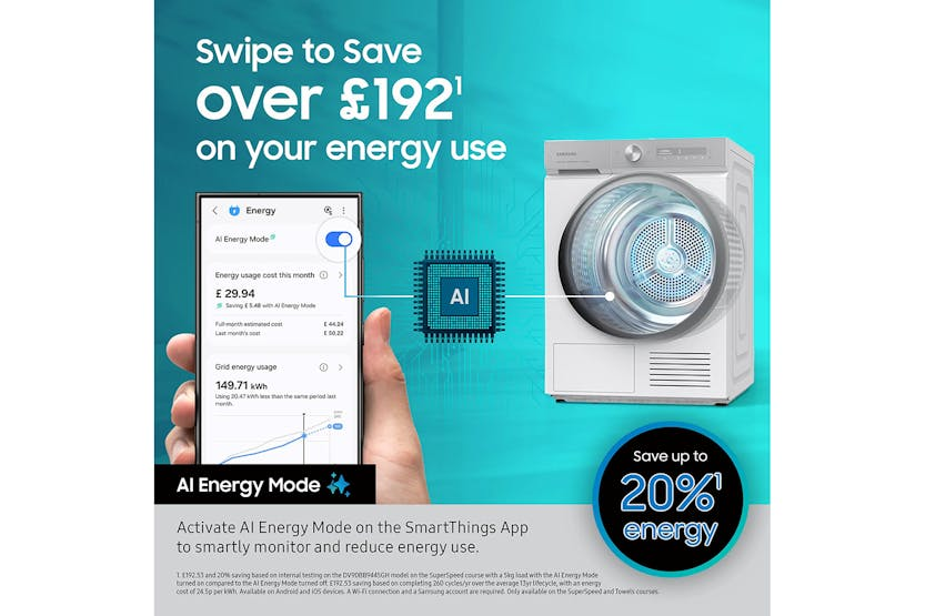 Upgrade your laundry experience with the Samsung 9kg Condenser Tumble Dryer | DV90DG6845LBU1. This intelligently efficient dryer features AI technology for faster and more precise drying, reducing energy use by up to 20% and drying time by 20%. With sensor intelligence and personalized drying cycles, you can enjoy convenient and effective laundry care every time. Plus, with SmartThings integration, you can easily manage energy usage and receive maintenance alerts for optimal performance. Make laundry day a breeze with this innovative and efficient tumble dryer. Take advantage of the Harvey Norman Gift Card offer and get 10% back when you spend €500 or more on Large Appliances, including the Samsung 9kg Condenser Tumble Dryer | DV90DG6845LBU1. With features like quick drying cycles, wrinkle prevention, and deodorizing technology, this dryer offers convenience and efficiency in one sleek package. Enhance your laundry routine with the durable motor and hygiene care cycle for up to 99.9% sanitization. Experience smart drying with SmartThings integration for personalized care and energy efficiency tips. Upgrade your laundry room with this high-performance and user-friendly tumble dryer from Samsung.
