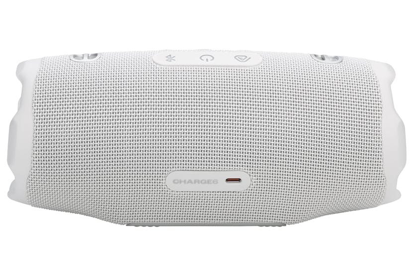 The JBL Charge 6 Portable Bluetooth Speaker in White is the ultimate audio powerhouse, delivering powerful JBL Pro Sound with AI Sound Boost for a truly immersive listening experience. With up to 28 hours of playtime, waterproof, dustproof, and drop-proof design, multi-speaker connection capabilities, and a built-in powerbank, this speaker is perfect for any adventure or party. Experience the next level of portable audio with the JBL Charge 6. With features like lossless audio playback, fast charging, and a sturdy handle strap, this speaker is designed to keep the music going wherever you go. Plus, with eco-friendly materials and packaging, you can enjoy your favorite tunes while being kind to the planet.