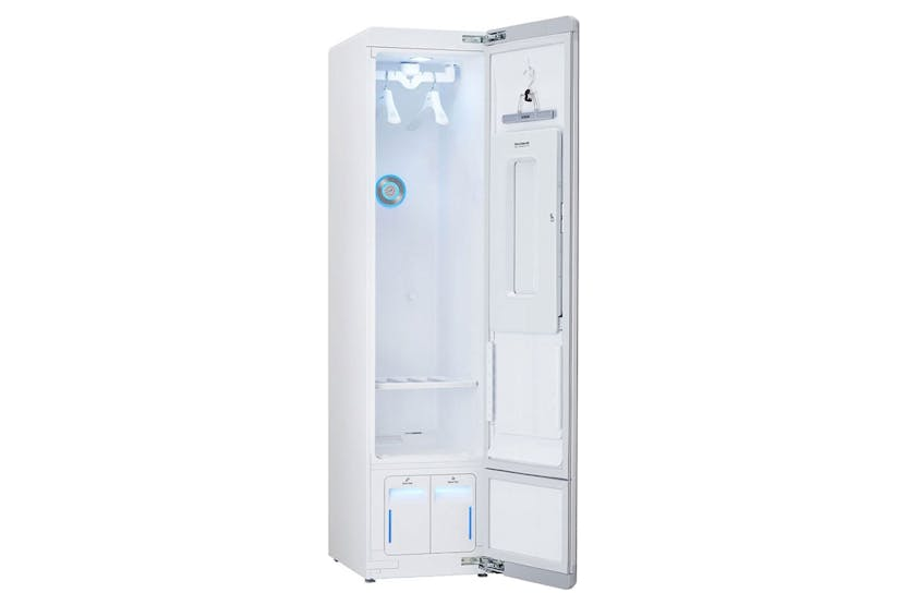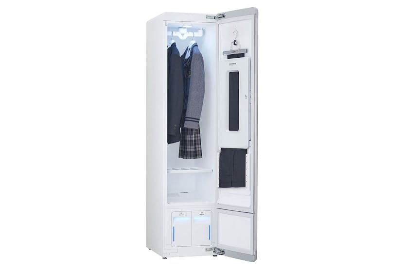 The LG Freestanding Styler Steam Clothing Care System in black offers a convenient and effective solution for keeping your clothes clean, hygienic, and refreshed. With features like gentle steam drying, allergen reduction, and the ability to infuse your clothes with fragrance, this system is perfect for delicate items that can't be treated in traditional washers or dryers. Plus, with smart technology like WiFi connectivity and the LG ThinQ app, you can easily control and monitor your Styler from anywhere. Take advantage of the 10% back in Harvey Norman Gift Cards promotion when you spend €500 or more on Large Appliances and invest in a healthier, more sustainable clothing care routine with the LG Styler. Keep your wardrobe looking its best, minimize trips to the dry cleaners, and enjoy the convenience of refreshing your clothes at home with this innovative clothing care system.