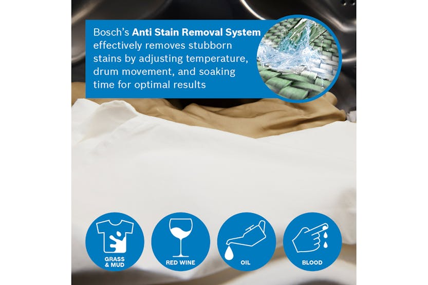 The Bosch Series 6 9kg Freestanding Washing Machine | WGG24400GB is the perfect blend of efficiency and performance. With an A rating for energy efficiency, Speed Perfect technology for faster washing cycles, and features like Anti Stain and Iron Assist, this washing machine offers powerful yet gentle washing to protect your clothes. The Active Water Plus technology ensures precise water usage for every wash, while the Hygiene Plus program guarantees hygienically clean laundry even at 40°C. Plus, with a 10-year warranty on the Eco Silence Drive™ motor, you can enjoy quiet and energy-efficient operation for years to come. Upgrade your laundry routine with the Bosch Series 6 9kg Freestanding Washing Machine | WGG24400GB. From its large LED display for easy operation to the Reload function for adding forgotten items mid-cycle, this washing machine offers convenience and efficiency. With the VarioDrum system for gentle washing and the ability to reduce wrinkles with Iron Assist, this appliance is designed to make your life easier. Save time and energy with Speed Perfect technology, and rest assured knowing that Bosch's commitment to sustainability means you're investing in a product that saves valuable resources without compromising on performance.