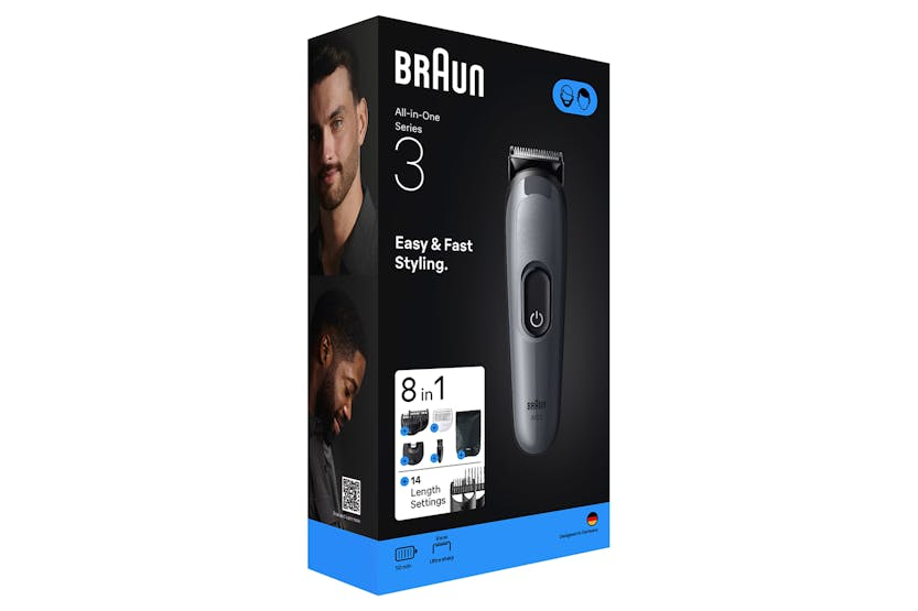 Achieve effortless and precise grooming with the Braun Series 3 AIO3540 8-in-1 Grooming Kit. This all-in-one trimmer includes a variety of curated tools for beard trimming and hair clipping, ensuring great results every time. With features like the Ultra Sharp Blade and 14 trimming lengths, you'll have full control over your styling needs. Plus, enjoy up to 50 minutes of cordless runtime and easy cleaning with washable heads and combs. Upgrade your grooming routine with this versatile and convenient grooming kit.