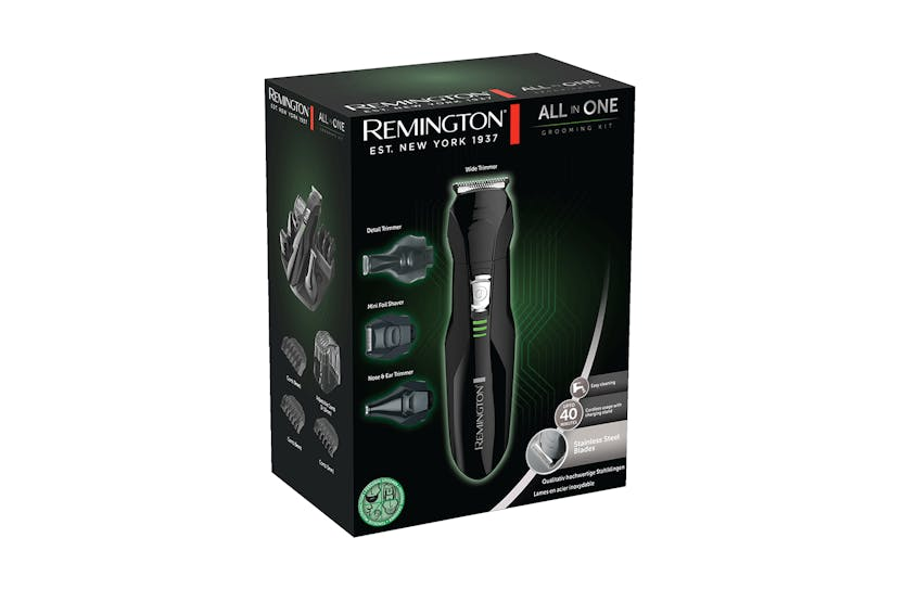 The Remington All-in-One Grooming Kit | PG6020 offers a complete solution for all your grooming needs. With self-sharpening stainless steel blades, a 30mm main trimmer, and adjustable beard and hair comb (2mm-16mm), you can achieve precise and customized trimming results. The kit also includes 3 fixed combs (3mm-9mm), a detail trimmer for fine detailing, and a linear nose and ear trimmer for a polished look. Keep your hair and beard looking sharp with this versatile and high-performance grooming kit. Upgrade your grooming routine with the Remington All-in-One Grooming Kit | PG6020. Featuring a 30mm main trimmer, charging stand, detail trimmer, and linear nose & ear trimmer, this kit provides everything you need for a well-groomed appearance. The self-sharpening stainless steel blades ensure a premium cutting performance, while the adjustable beard and hair comb (2mm-16mm) and 3 fixed combs (3mm-9mm) offer versatility for various styles. Say goodbye to unwanted hair and hello to a perfectly groomed look with this all-in-one grooming kit.
