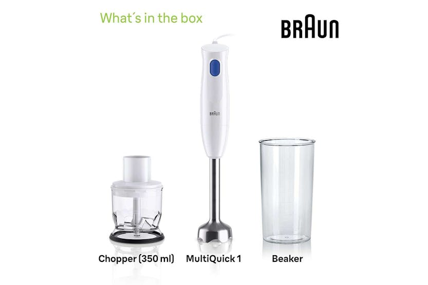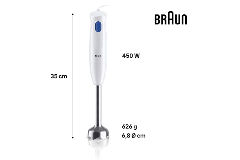 Experience the new level of simplicity with the Braun MultiQuick 1 Hand Blender in White & Blue. This lightweight blender features a powerful 450-watt motor for easy blending of smoothies, desserts, and sauces with minimal effort. The EasyTwist System allows for quick attachment changes, while the 350 ml chopper makes food preparation a breeze. Plus, the dishwasher-safe design ensures easy cleanup after use. With its 1-speed control button and BPA-free plastic beaker, the Braun MultiQuick 1 Hand Blender offers convenience and reliability in one compact package. Upgrade your blending experience today with this versatile and efficient kitchen essential.