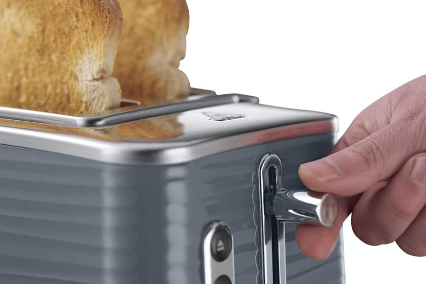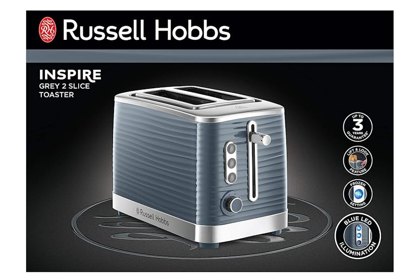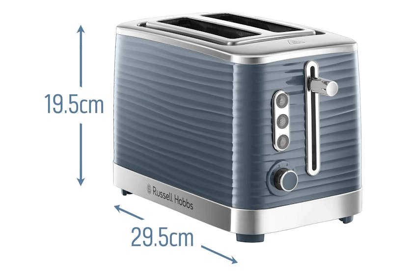 Elevate your breakfast experience with the Russell Hobbs Inspire 2 Slice Toaster in Grey. This stylish toaster not only adds a touch of elegance to your kitchen with its premium textured plastic and blue LED illumination, but also offers convenient features such as frozen, cancel, and reheat settings. The lift and look feature allows you to check on your toast without interrupting the toasting cycle, while the extra lift function makes it easy to remove your toast safely. Start your day right with perfectly toasted bread every time. The Russell Hobbs Inspire 2 Slice Toaster in Grey is designed to make your mornings easier and more enjoyable. With wide slots, a defrost function, and variable browning control, this toaster caters to your every need. The sleek chrome accents and blue LED indicators add a modern touch to your kitchen decor. Say goodbye to burnt toast and hello to perfectly toasted slices with this versatile and stylish toaster.