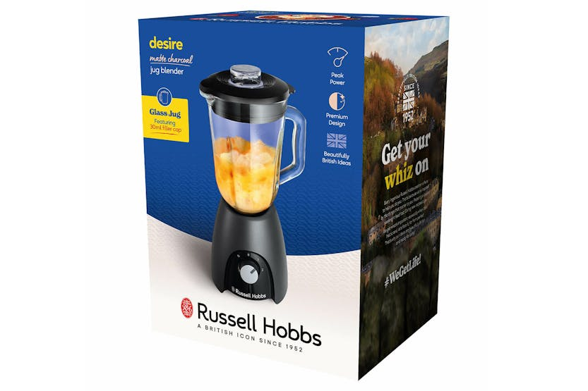 Introducing the Russell Hobbs Desire Jug Blender in Charcoal (27121) - a sleek and powerful addition to any kitchen. With a 1.5L capacity and 650W motor, this blender effortlessly blends, purees, and crushes ingredients to create smooth and delicious drinks and dishes. The durable stainless steel blades ensure consistent results every time, making it a must-have appliance for any home chef looking to elevate their culinary creations. Upgrade your blending experience with the Russell Hobbs Desire Jug Blender in Charcoal.