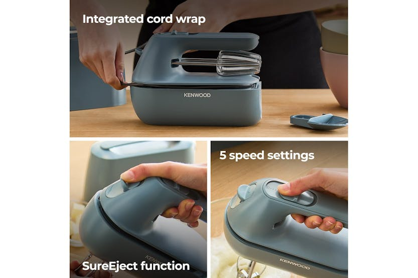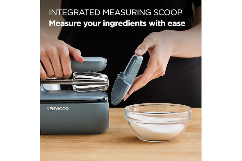 The Kenwood QuickMix Go Hand Mixer in Storm Blue offers innovative storage solutions, effortless mixing performance with a 350W motor, and a safe Sureeject beater release button. The 5 speed slider function allows for precise control, while the 30% recycled plastic construction reflects a commitment to sustainability. With a convenient measuring spoon, easy carry handle, and stylish Storm Blue design, this hand mixer is a functional and decorative addition to any kitchen. Say goodbye to cluttered drawers and hello to seamless baking experiences with the Kenwood QuickMix Go Hand Mixer in Storm Blue. With all-in-one storage, a forward-facing beater release button, and a convenient measuring spoon, this mixer offers both practicality and style. The 5 speed slider function and easy carry handle make it a versatile and portable tool for any baking enthusiast.