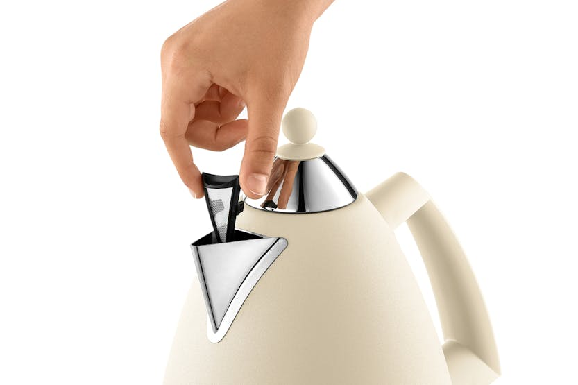 Upgrade your kitchen with the DeLonghi Argento Flora 1.7L Kettle in Beige. This stylish kettle features a water level indicator for precise measurements, an anti-scale filter for pure water, and a swivel base for easy use. The Argento Flora design adds a touch of sophistication to your kitchen, while the non-slip feet, cord storage, and safety features ensure a convenient and safe brewing experience every time. Don't compromise on style or functionality with the DeLonghi Argento Flora Kettle. Bring the beauty of the outdoors into your kitchen with the DeLonghi Argento Flora 1.7L Kettle in Beige. This kettle not only boasts a sleek design, but also practical features like a water level indicator, anti-scale filter, and swivel base for cord-free convenience. With non-slip feet, cord storage, and safety protection, this kettle combines style and functionality seamlessly. Elevate your tea or coffee brewing experience with the DeLonghi Argento Flora Kettle.