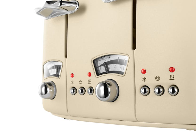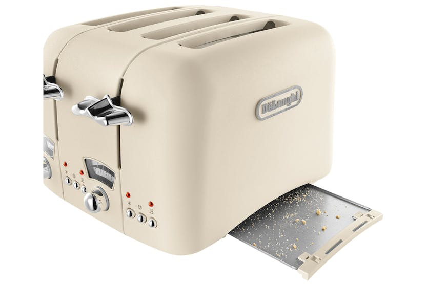 Upgrade your morning routine with the Delonghi Argento Flora 4 Slice Toaster in elegant beige. The extra lift position ensures easy removal of small slices, while the removable crumb tray makes cleaning a breeze. With electronic browning controls and convenient functions like reheat and defrost, this toaster offers total control over your toasting experience. Plus, the sophisticated Argento Flora design brings a touch of outdoor beauty into your kitchen. Experience the ultimate in toasting convenience with the Delonghi Argento Flora 4 Slice Toaster. Featuring dual independent control panels, this toaster allows you to customize toasting preferences for the whole family. The jasmine beige matt finish with chrome details adds a touch of luxury to your countertop, while the included accessories like the crumb tray make this toaster a must-have for any kitchen. Elevate your breakfast game with the Delonghi Argento Flora 4 Slice Toaster.