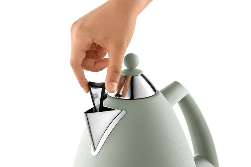 Upgrade your kitchen with the stylish DeLonghi Argento Flora 1.7L Kettle in Green. This kettle features a water level indicator for easy filling, an anti-scale filter for clean water, and a swivel base for convenient use. With non-slip feet, cord storage, and 3-level safety protection, this kettle is both practical and safe to use. The twin neon power-on lights and flat stainless steel concealed element add a touch of sophistication to your kitchen. Experience the convenience and elegance of the DeLonghi Argento Flora 1.7L Kettle in Green. With its sleek design and practical features such as a water level indicator, anti-scale filter, and swivel base, this kettle is a must-have for any modern kitchen. The non-slip feet, cord storage, and 3-level safety protection ensure a hassle-free and safe experience, while the twin neon power-on lights and flat stainless steel concealed element add a touch of style to your countertop.