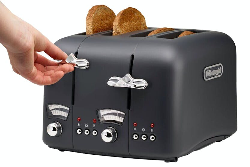 Upgrade your kitchen with the De'Longhi Argento Silva 4-Slice Toaster in Tactile Grey. With versatile electronic controls for perfect browning, a removable crumb tray for easy cleaning, and a luxurious matt finish with chrome trims, this toaster brings both style and functionality to your countertop. Inspired by the beauty of nature, the Argento Silva design adds a touch of elegance to any modern kitchen. Experience total control over your toasting with electronic preset functions for defrost, reheat, and cancel, along with dual independent control panels for customized toasting. The extra-lift position allows for safe removal of small slices, while the included 2 crumb trays ensure hassle-free maintenance. Elevate your breakfast routine with the De'Longhi Argento Silva 4-Slice Toaster in Tactile Grey.