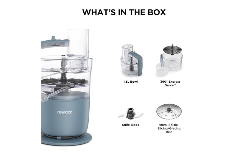 The Kenwood 1.3L MultiPro Go Food Processor in Storm Blue is a compact and powerful kitchen essential that allows you to chop, slice, grate, and serve directly onto your plate. With a 650W motor, this food processor can handle a variety of tasks from making salsa to kneading dough. The Express Serve attachment saves time and reduces cleanup by allowing you to slice and grate directly onto your serving dish. Easy to use with dishwasher safe parts, this food processor is perfect for everyday food prep. The MultiPro Go features a 1.3L bowl capacity and a versatile stainless steel knife blade for both coarse and fine chopping. The compact design and convenient cable storage make it easy to store on your kitchen worktop or in a drawer. Say goodbye to clutter and hello to efficient food prep with the Kenwood MultiPro Go Food Processor.