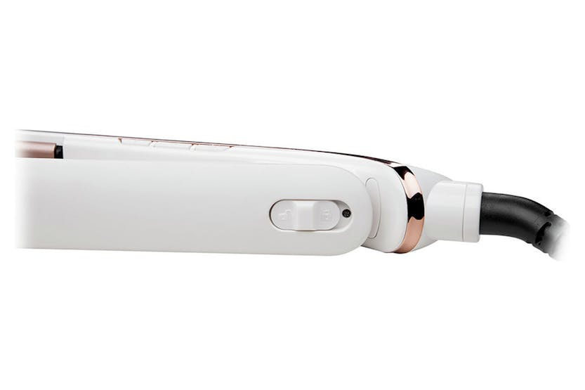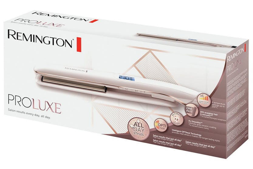 Achieve salon-quality, long-lasting straight hair with the Remington Proluxe Hair Straightener in Rose Gold. Featuring intelligent OPTIheat technology and a unique PRO+ setting, this straightener locks in styles all day while promoting healthy, shiny hair. With ultimate glide ceramic-coated plates, enjoy up to 5 times smoother results and 50% straighter hair in just one pass. Say goodbye to frazzled hair and hello to 24-hour style confidence with this professional-grade straightener.
