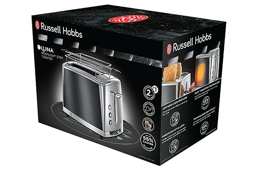 Enhance your breakfast experience with the Russell Hobbs Luna 2 Slice Toaster in Moonlight Grey. This sleek toaster features fast toasting technology, adjustable browning control, and a lift and look feature for perfect results every time. With its stylish design and versatile functionality, this toaster is a must-have addition to your kitchen. Upgrade your morning routine with the Luna 2 Slice Toaster's ability to toast a variety of bread types, including thick slices and homemade bread. The high lift feature, 'lift and look' technology, and wide slots ensure a hassle-free toasting experience. Say goodbye to unevenly toasted bread and hello to perfectly crispy slices with this innovative and efficient toaster.