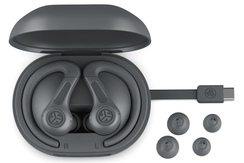 Enhance your workout experience with the JLab JBuds Sport ANC 4 True Wireless Earbuds in Graphite. With 60+ hours of playtime, IP66 sweat resistance, and Be Aware audio, these earbuds are designed to keep up with your active lifestyle. The Hybrid ANC + Noise Control feature, Lab Spatial Audio, and customizable sound options in the JLab App ensure a personalized and immersive listening experience. Stay connected and focused during your workouts with the touch and swipe controls, noise-canceling microphones for clear calls, and Google Fast Pair compatibility. The wireless charging capability, IP66 splashproof rating, and fast charging option make these earbuds a convenient and reliable choice for all your fitness needs.