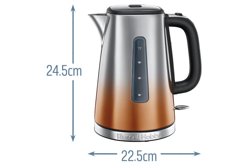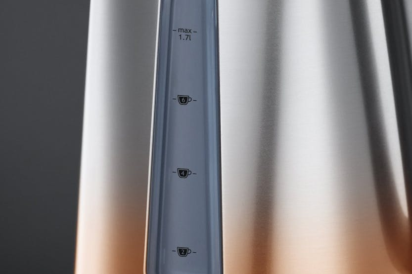 Introducing the Russell Hobbs 1.7L Eclipse Kettle in Copper Sunset. This sleek and stylish kettle not only adds a touch of elegance to your kitchen with its copper ombre effect, but also offers advanced features to enhance your tea or coffee experience. The Quiet Boil Technology ensures a peaceful brewing process, while the Rapid Boil Zone delivers hot water in just 45 seconds, perfect for busy mornings. With convenient features like the easy push button lid, illuminated water windows, and removable filter, the Eclipse Kettle is designed for both functionality and style. Bring the beauty of an eclipse into your home with the Russell Hobbs 1.7L Eclipse Kettle in Copper Sunset. This stunning kettle not only boasts a unique design inspired by the natural phenomenon, but also offers practical features to make your daily tea or coffee routine a breeze. The Quiet Boil Technology ensures a peaceful brewing experience, while the Rapid Boil Zone allows you to enjoy a cup of hot water in just 45 seconds. With a 360° base, cord storage, and easy pour spout, the Eclipse Kettle is both convenient and stylish addition to any kitchen.
