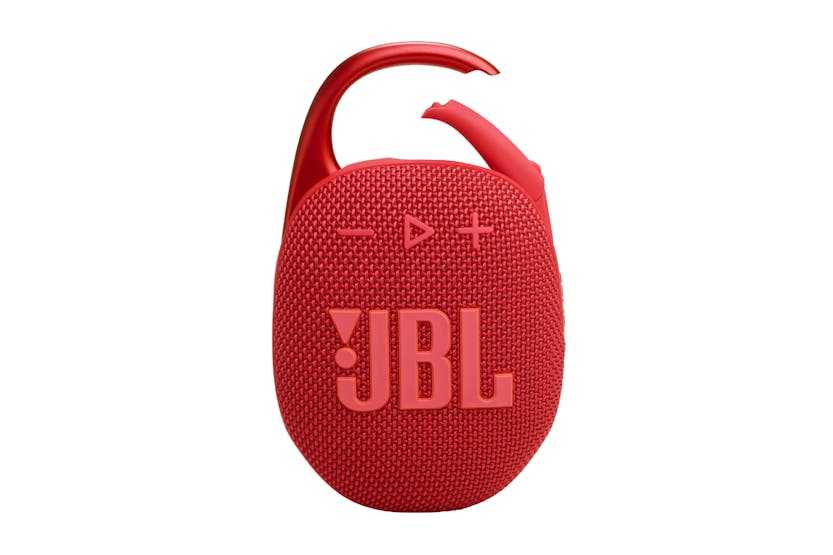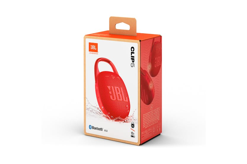 The JBL Clip 5 Portable Bluetooth Speaker in Red delivers big JBL Pro Sound in a compact size, with a redesigned carabiner for easy portability. Enjoy up to 12 hours of playtime, waterproof and dustproof design, and the ability to pair with multiple speakers for even bigger sound. With vibrant color options and sustainable materials, the JBL Clip 5 is the perfect companion for all your adventures. Included in the box is a Type C USB cable for convenient charging. Featuring Bluetooth version 5.3, a quick 3-hour charge time, and a maximum operation temperature of 45°C, the JBL Clip 5 offers a high-quality audio experience with up to 12 hours of playtime, plus an additional 3 hours with Playtime Boost.