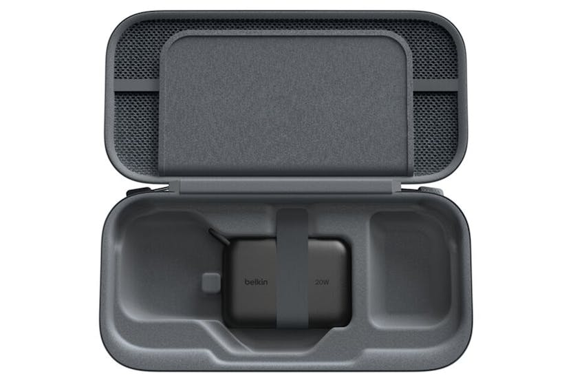 Power up and play longer with the Belkin Gaming Nintendo Switch 2 Charging Case & Power Bank in Charcoal. Designed specifically for Nintendo Switch 2, this premium case offers high-capacity charging and superior protection against scratches, bumps, and drops. The included 10k power bank can recharge your Switch 2 up to 1.5 times, while the LCD screen displays the remaining battery level for added convenience. With features like removable bumpers, game card storage, and a kickstand groove for tabletop mode play, this case is a must-have for gamers on the go. Safely charge, store, and transport your Nintendo Switch 2 with the Belkin Gaming Charging Case & Power Bank. Compatible with Nintendo Switch, Switch OLED, and Switch 2, this durable case offers reliable power on the go. The removable bumpers provide added protection, while the included 10k power bank can recharge your device up to 1.5 times. With features like a game card storage flap, hidden AirTag compartment, and kickstand groove for tabletop mode play, this case is the perfect accessory for gamers looking to enhance their gaming experience.
