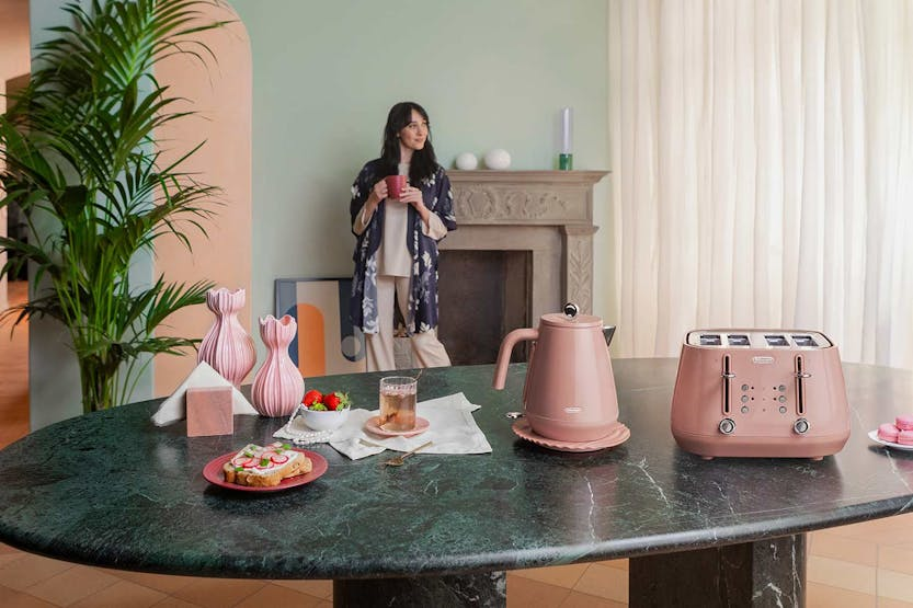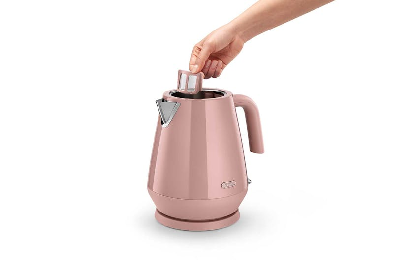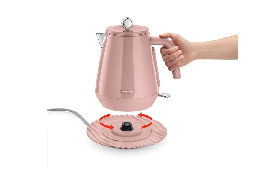 Add a touch of eclectic style to your kitchen with the DeLonghi Eclettica Kettle in Pink. This 3000W electric kettle features a 360° cordless base, anti-scale filter, and water level indicator for convenience and ease of use. Enjoy the perfect cup of tea or coffee with this stylish and elegant kettle that reflects your unique personality and taste. Experience rapid boiling, easy maintenance, and a playful pink design with the DeLonghi Eclettica Kettle. Celebrate your individuality and enjoy delightful breakfasts and tea breaks with this masterfully crafted Italian-style kettle that adds a touch of modern elegance to your kitchen.