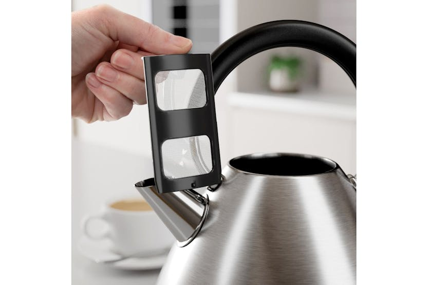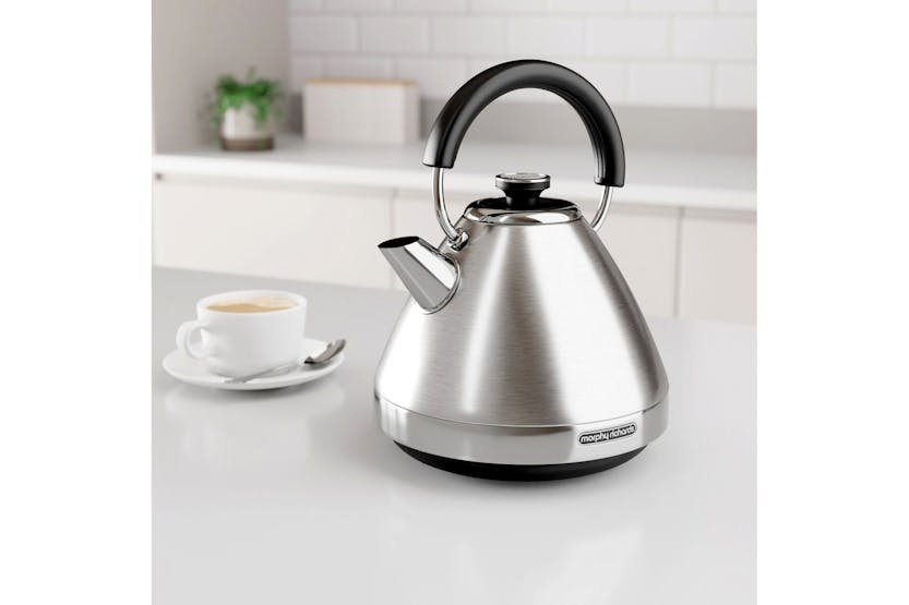 Add a touch of timeless elegance to your kitchen with the Morphy Richards 1.5L Venture Pyramid Kettle in sleek silver. This kettle combines classic design with modern technology, featuring a 3kW element for rapid boiling, a removable limescale filter for a quality drink every time, and an easy-view water window to help save energy. The built-in cord tidy keeps countertops clutter-free, making it a must-have for tea enthusiasts looking for both style and functionality. Please note that slight colour variations may occur due to Morphy Richards' paint processes. Elevate your tea-making experience with this stylish and efficient kettle.