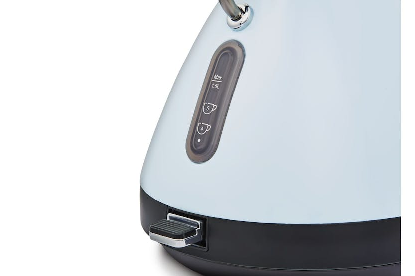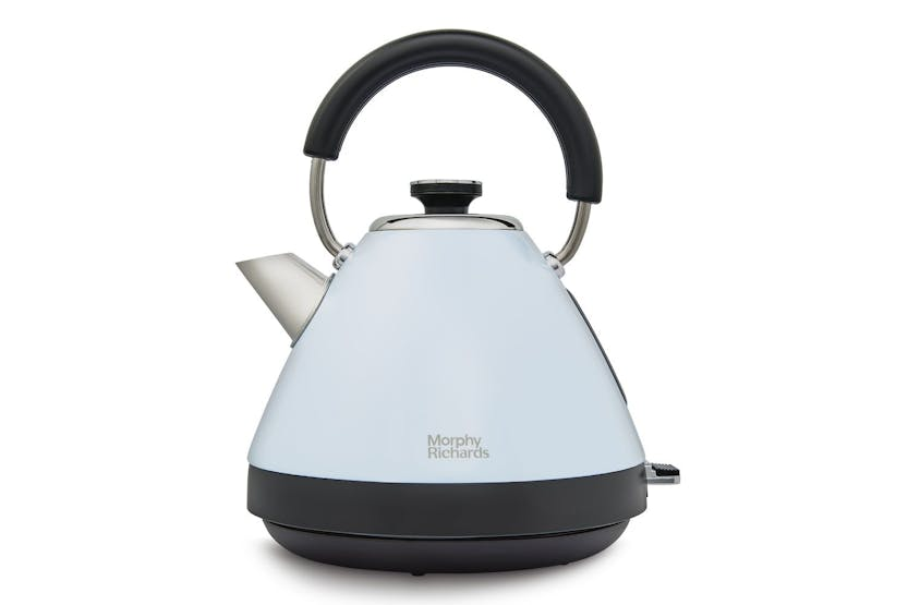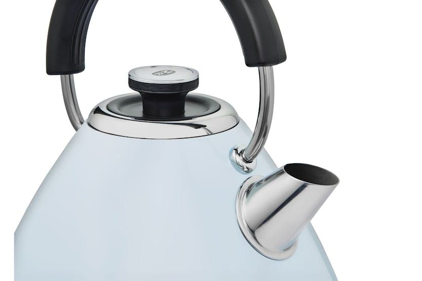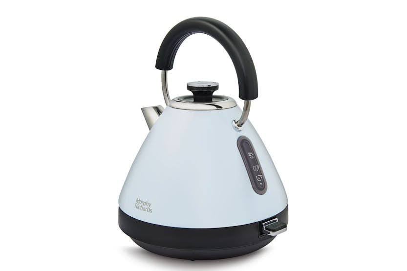 Upgrade your kitchen with the Morphy Richards Venture Metal Pyramid Kettle in Duck Egg Blue. This stylish and efficient kettle boasts a 3kW element for rapid boiling, a removable limescale filter for quality drinks, and a built-in cord tidy for clutter-free countertops. With a generous 1.5 litre capacity, it's the perfect companion for your tea or coffee rituals, offering both style and functionality in one sleek package. Experience the perfect brew every time with the Morphy Richards Venture Kettle. Its energy-efficient design, easy-view water window, and timeless vintage charm make it a must-have for any kitchen. Say goodbye to tangled wires and limescale deposits, and hello to a seamless tea or coffee experience that's both eco-friendly and convenient.