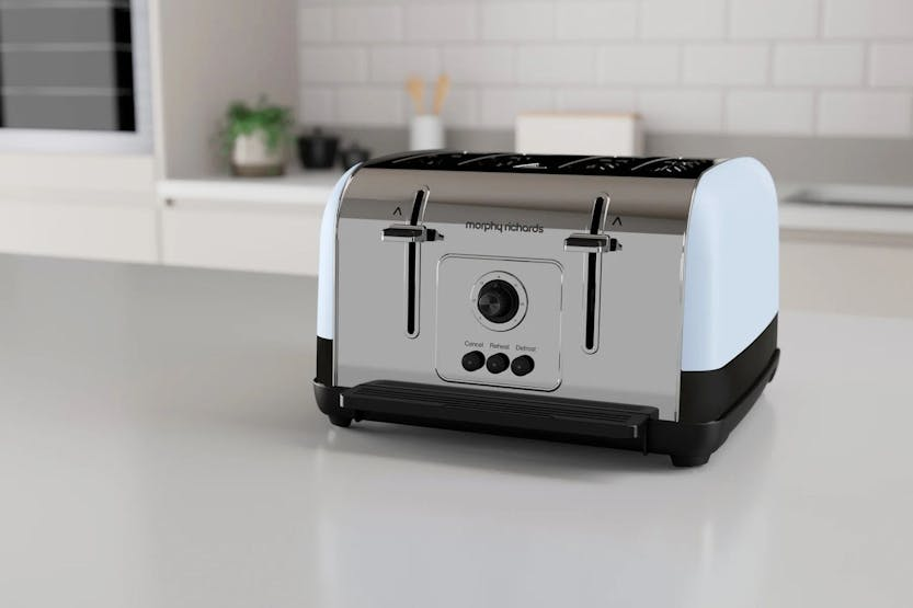 Elevate your morning routine with the Morphy Richards Venture 4 Slice Toaster in Duck Egg Blue. This stylish toaster combines retro charm with modern innovation, boasting a powerful 1900w power output and dual control feature for perfectly toasted slices every time. With variable browning control, reheat settings, and high lift levers for easy removal, this toaster is a must-have for any kitchen looking to add style, performance, and convenience to their breakfast routine. Experience the perfect blend of style and functionality with the Morphy Richards Venture 4 Slice Toaster. Its sleek design and smart features, such as variable width slots and a removable crumb tray, ensure a hassle-free toasting experience every time. Upgrade your kitchen with this versatile appliance that promises to deliver the perfect slice of toast, from light to crispy, with just the touch of a dial.
