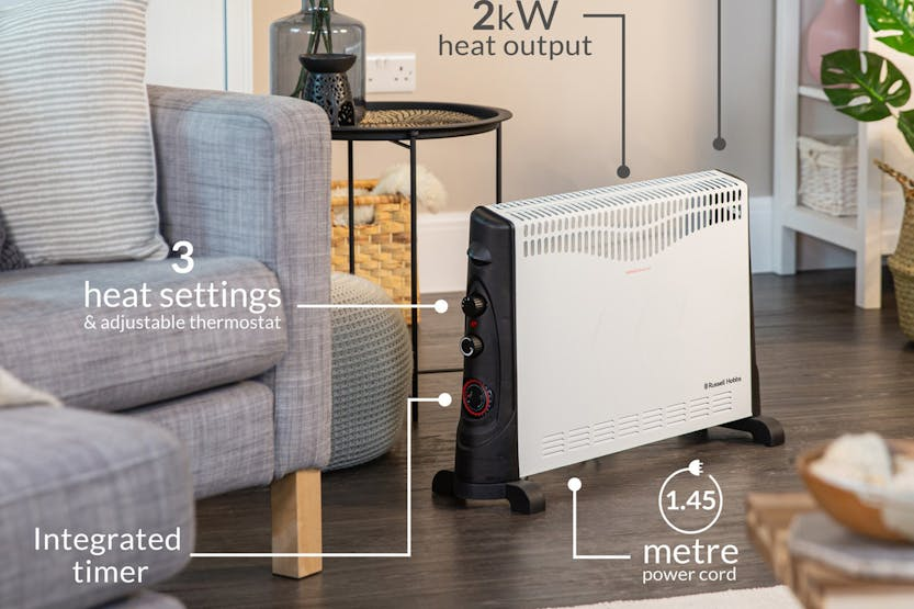 Stay warm and cozy all winter long with the Russell Hobbs 2KW Convector Heater with Timer. This freestanding heater offers 3 heat settings and an adjustable thermostat, allowing you to customize the temperature to your liking. The integrated timer lets you heat your home according to your daily schedule, while the 2kW total heat output is perfect for rooms up to 20m2. With features like carry handles, frost protection, and overheat protection, this heater is both convenient and safe for year-round use. Don't let the cold weather get you down - invest in the Russell Hobbs RHCVH4002 for reliable warmth and comfort.