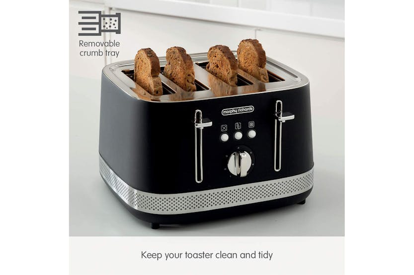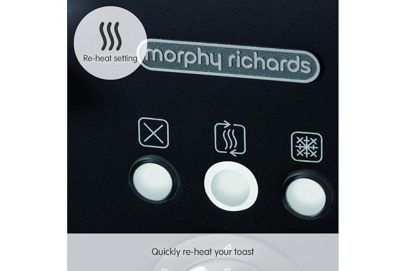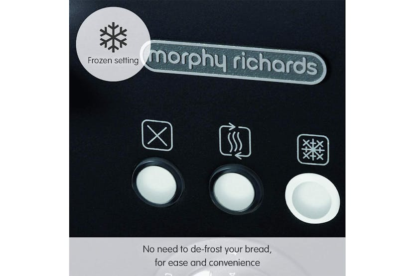 Upgrade your breakfast routine with the Morphy Richards Illumination 4 Slice Toaster in sleek black. Enjoy the calming blue light while toasting your bread, and easily customize your toast with the variable browning control. The toaster also features convenient functions like frozen, cancel, and reheat settings, making it a stylish and practical addition to any kitchen. Experience the perfect toast every time with the Morphy Richards Illumination 4 Slice Toaster. With its stunning blue illumination, variable browning control, and easy-to-use functions, this toaster combines style and functionality to elevate your morning routine. Say goodbye to burnt toast and hello to perfectly cooked slices with this must-have kitchen appliance.
