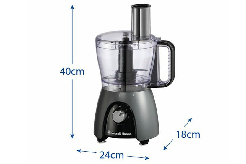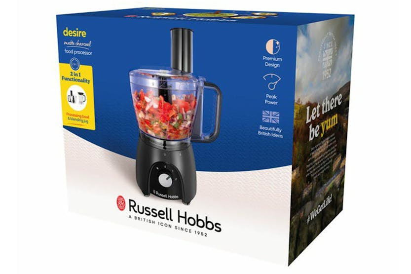 The Russell Hobbs Desire Food Processor in Matte Charcoal is your stylish and high-powered kitchen companion, perfect for all your food prep needs. With 600W (900W peak power*), 2 speeds, and pulse settings, this food processor delivers great results quickly, leaving you more time to relax and enjoy your meals. Say goodbye to tedious chopping, slicing, blending, and kneading with this reliable and efficient appliance.