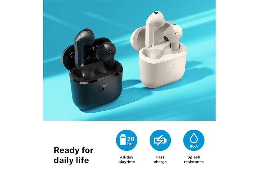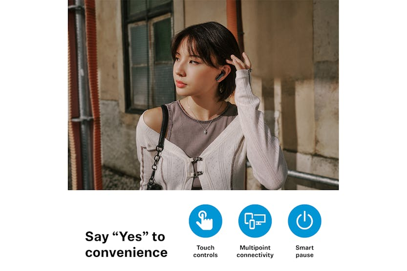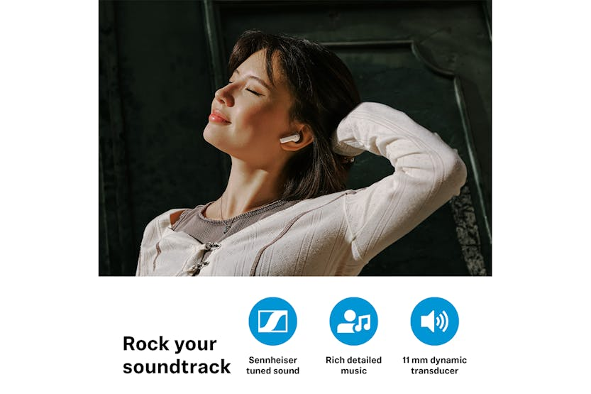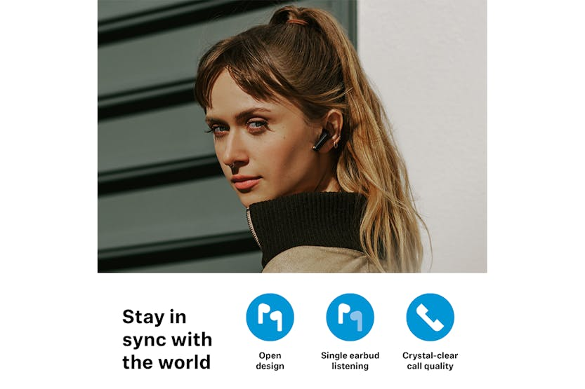 Experience the ultimate in wireless audio with the Sennheiser ACCENTUM Open Wireless Earbuds. Tuned by Sennheiser for superior sound quality, these earbuds feature an open design that allows you to stay connected to your surroundings while enjoying your favorite music. With up to 28 hours of playtime, comfortable fit, and intuitive touch controls, these earbuds are the perfect blend of style and functionality for all-day use. Stay aware, stay connected, and stay in control with the ACCENTUM Open Wireless Earbuds in sleek black.