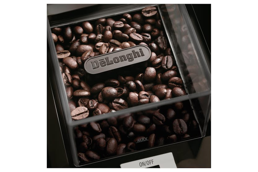 The De'Longhi Coffee Burr Grinder KG79 in black features a Burr grinding system that preserves the aroma of your coffee beans by preventing overheating. With 16 grind settings and a cup selector for up to 12 cups, you can customize your coffee to your preference. The dual safe system ensures safety by turning off the grinder when the bean or ground coffee container is removed, making it a convenient and efficient addition to your kitchen. Experience the perfect cup of coffee with the De'Longhi Coffee Burr Grinder KG79. With its Burr grinding system and 16 grind settings, you can achieve a customized powder for up to 12 cups of coffee. The user-friendly interface and dual safe system provide ease of use and peace of mind, while the removable bean container and self-contained cord storage make maintenance a breeze. Elevate your coffee experience with this sleek and efficient grinder.