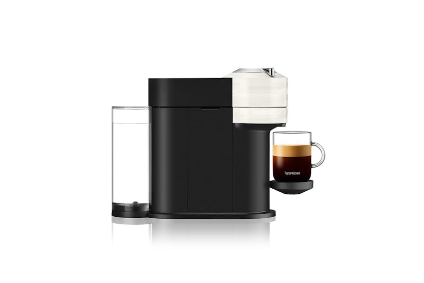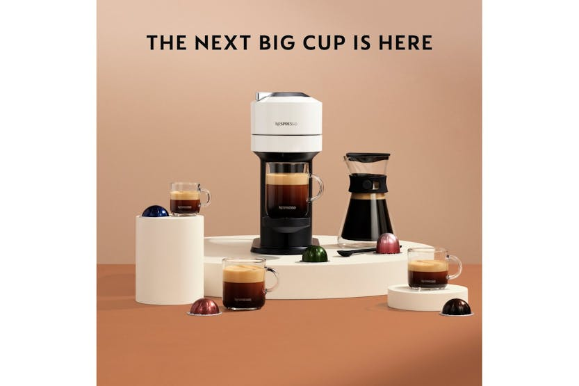 Experience the ultimate convenience and versatility with the Nespresso Vertuo Next Coffee Machine by De'Longhi in White. This sleek and compact machine offers a wide range of coffee options, from espresso to carafe, all at the touch of a button. With its Centrifusion Extraction Technology and intelligent extraction system, each cup is brewed to perfection, adjusting parameters based on the selected GrandCru. The machine's easy-to-use design and quick heat-up time make it a must-have for any coffee lover looking for quality and convenience in one. The Vertuo Next also features five cup sizes, a used capsule container that can hold up to 10 capsules, and eco-mode for energy efficiency. With its blend-specific brewing capabilities and modern design, this coffee machine is the perfect addition to any kitchen or countertop, offering a premium coffee experience with every cup.