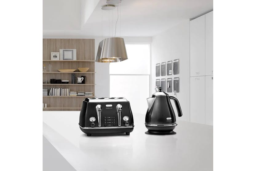 Enhance your kitchen with the DeLonghi 1.7L Icona Micalite Kettle in glossy black. The sleek design and retro charm combined with innovative technology make this kettle a stylish addition to your home. With features like an anti-scale filter, swivel base, and water level indicator, this kettle offers convenience and ease of use. Plus, the auto shut-off function ensures ultimate safety while boiling water for your tea or coffee. The DeLonghi Icona Micalite Kettle is not just a kitchen appliance, but a statement piece that adds an exclusive touch of class to your home. Its 1.7 litre water capacity and detachable lid make it practical and functional, while the glossy black finish adds a unique style to your kitchen. Upgrade to this kettle for a blend of elegance and simplicity in your daily routine.