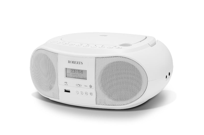 Experience the ultimate in portable audio with the Roberts Boombox Radio with CD Player in White. Enjoy crystal-clear DAB quality radio, CD playback, and Bluetooth streaming all in one sleek and compact design. With 60 station presets, EQ settings, and USB media playback, this versatile device offers exceptional sound quality and convenience on the go. Powered by mains or batteries, and featuring a sturdy handle for easy portability, this Boombox is the perfect choice for music lovers everywhere.