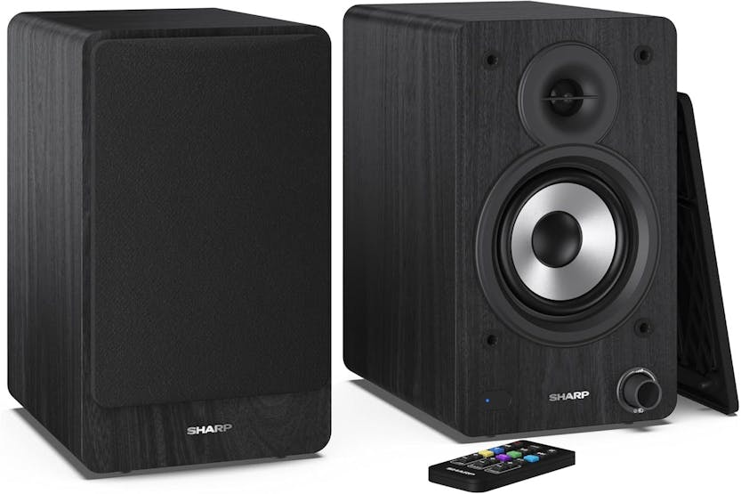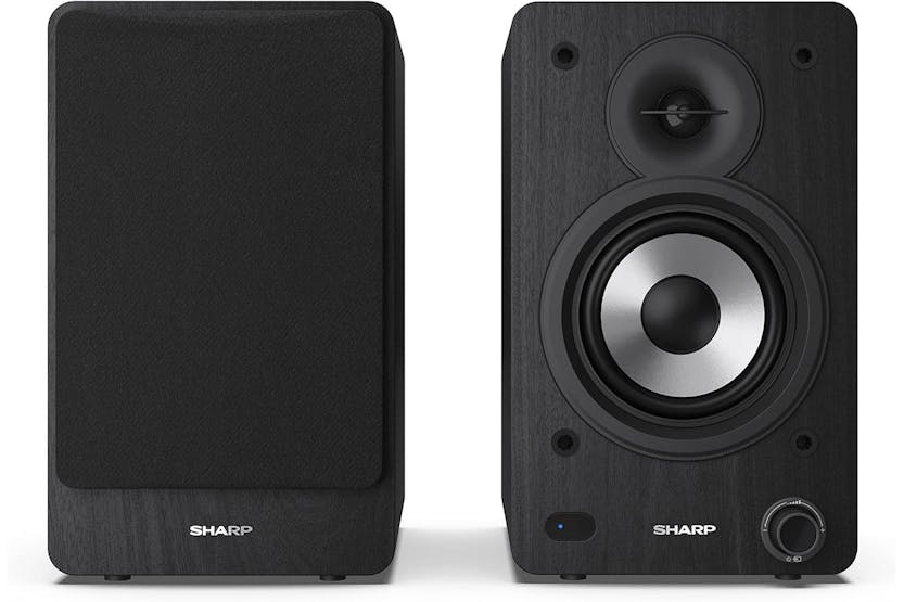 Enhance your audio experience with the SHARP SCP-SS30B Bookshelf Speakers in black. Boasting a powerful 60W RMS 2-way active speaker system, versatile input options, and 5 EQ presets, these speakers deliver high-fidelity sound with impeccable precision. The wooden housing not only adds to the aesthetic appeal but also ensures unparalleled sound reproduction, while the removable speaker grilles allow for a customizable contemporary look. Elevate your home entertainment with the convenience of wireless Bluetooth streaming and a full function remote control included for easy operation. Experience audio nirvana with SHARP.