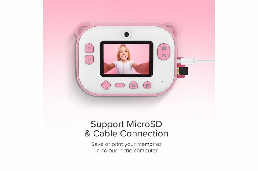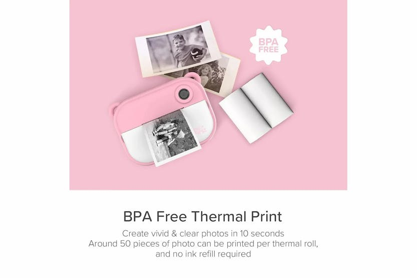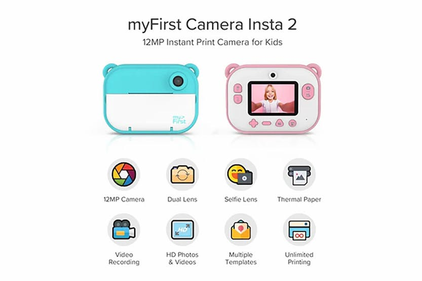 Capture and print memories instantly with the MyFirst Camera Insta 2 in Pink. This lightweight instant print camera for kids features a 12MP front and selfie lens, HD photo and video capabilities, and multiple frame templates for endless creativity. With refillable thermal paper and sticker options, your child can enjoy unlimited printing and stick their photos anywhere for added fun. Perfect for vacations, family activities, and arts and crafts projects, this camera is designed to bring joy and excitement to your child's learning process. The MyFirst Camera Insta 2 comes with 2 rolls of high-quality thermal paper, 1 roll of sticker thermal paper, a charging cable, and a neck lanyard. With a battery capacity of 1500mAh and quick 2.5-hour charging time, your child can capture moments from sun-up till sun-down. Whether they're creating photo albums, keeping notes, or simply having fun, this instant print camera is sure to be a hit with kids aged 4 to 13 years old.