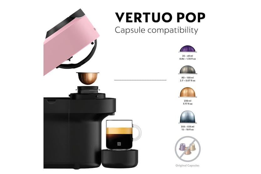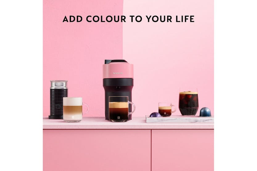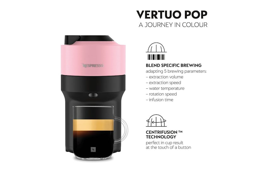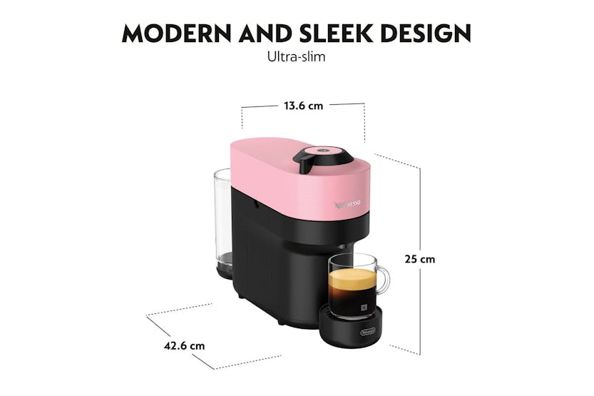 Elevate your coffee experience with the Nespresso Vertuo Pop Coffee Machine by De'Longhi in Candy Pink. This stylish machine not only adds a pop of color to your kitchen but also offers 5 cup sizes and patented Centrifusion Extraction Technology for perfect in-cup results every time. With smart connectivity for automatic updates and one-touch brewing, enjoy the convenience and quality of Nespresso with this compact and fun design. Upgrade to the Nespresso Vertuo Pop in Candy Pink for a sustainable and stylish coffee experience. This machine, made from 35% recycled plastic, offers 5 programmable coffee selections, one-touch operation, and automatic capsule ejection. With smart connectivity for updates and Centrifusion Extraction Technology for perfect blends, enjoy the best Nespresso experience in the comfort of your home.